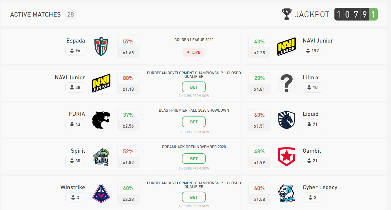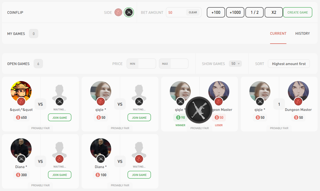 Jeśli nie jesteś zwolennikiem obstawiania pieniędzy na takie niezależne i nieprzewidywalne działania, strona otworzyła ostatnio system zakładów. Tutaj możesz postawić na zwycięstwo swojej ulubionej drużyny CSGO eSports i uzyskać zysk w oparciu o współczynnik zakładów. Ponieważ na tej stronie zakładów jest stosunkowo niewiele osób zaangażowanych w zakłady, czasami można złapać bardzo ładne kursy. Nie tak dawno temu na stronie pojawiły się jeszcze dwa tryby: Dice – gra w kości i Crash – gra na złamanej krzywej. W grze w kości wybierasz kurs i stawiasz, a następnie system wybiera Twój numer. Jeśli jest większa od twojej, to wygrywasz. W Crash jest podobnie, ale razem z Tobą liczba ta jest zastanawiana przez innych graczy i tryb wizualny jest zaprojektowany jako rosnący wykres.